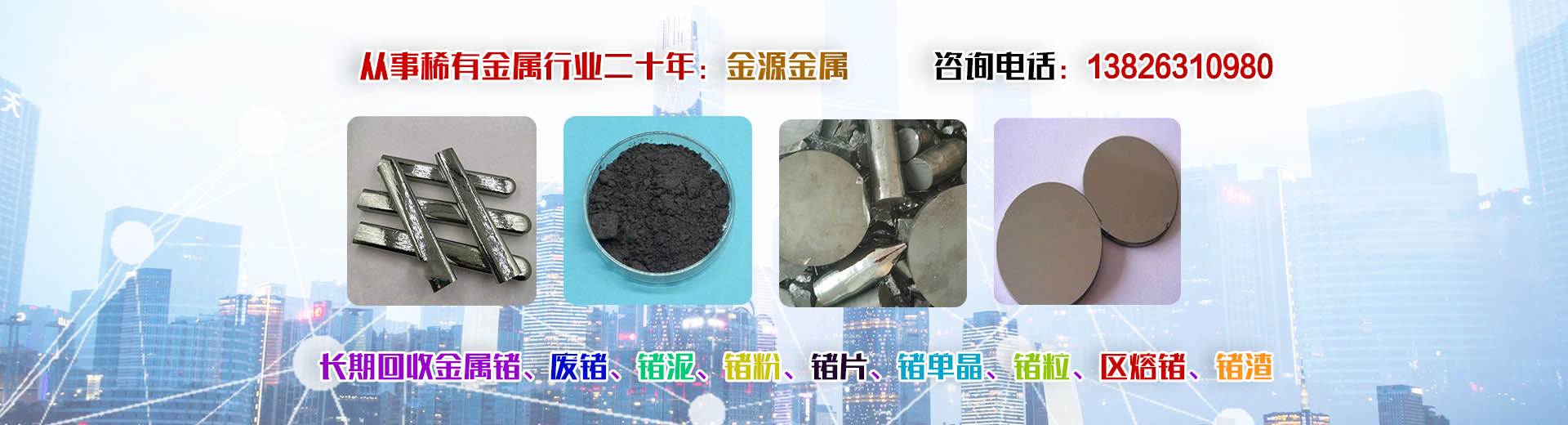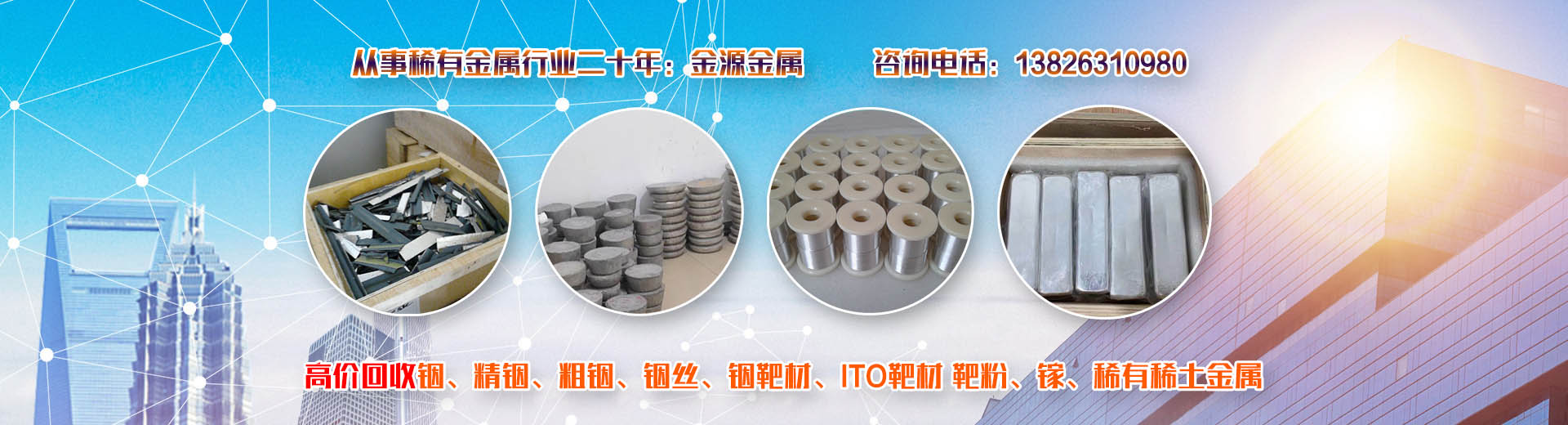 韶關(guān)市金源金屬材料有限公司坐落于中國廣東省韶關(guān)市,長(zhǎng)期收購回收銦、精銦、粗銦、銦絲、銦靶材、ITO靶材靶粉、回收金屬鍺、鍺錠、鍺粉、鍺片、回收鍺單晶、單晶鍺、鍺粒、區(qū)熔鍺、工業(yè)鍺、廢鍺、鍺泥、鍺渣、二氧化鍺回收、四氯化鍺、有機(jī)鍺、銀、純銀、銀靶材、高價(jià)收購回收ITO廢靶、回收廢銦、廢銦沙、廢銦渣、回收粗銦、廢銦絲、廢銦珠、廢銦箔、廢銦棒、收購銀焊條、銀焊絲、導(dǎo)電銀膠、金屬鎵、硝酸鎵、氧化鎵、三氯化鎵、氯化鎵,供應(yīng)及回收氧化鎵、氫氧化鎵、碲化鎵,硒化鎵,銦粉,氧化銦、氯化銦、硫酸銦、硫化銦、醋酸銦、氫氧化銦、硒化銦,碘化銦,銅銦鎵硒,含金、銀、銦、銠、鈀、鎵、鍺等稀有貴金屬材料,稀土金屬材料、氧化鏑、氧化镥、氧化鋱、氧化鐠釹等回收。